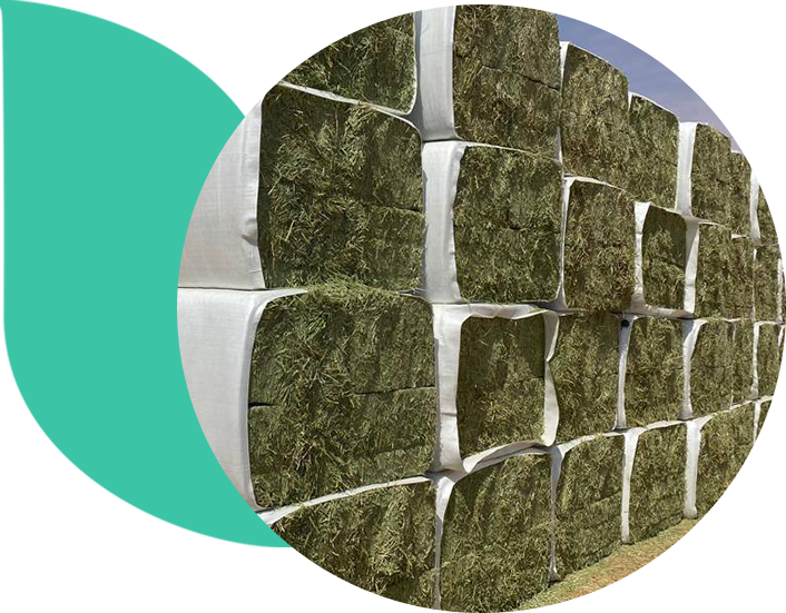 Alfalfa hay is a type of dried forage made from alfalfa plants. It is commonly used as feed for livestock, such as horses, cattle, and rabbits, due to its high protein and nutrient content.